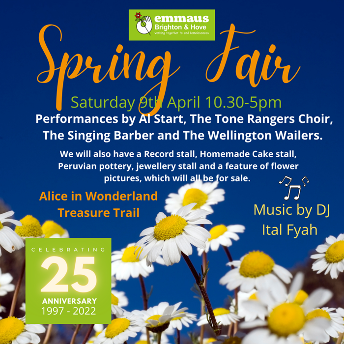 The Wellington Wailers are proud to be invited to perform at the Emmaus – Brighton and Hove Spring Fair on Saturday 09 Apr 2022! This is a great family day out lots of live music, a DJ and lots of fun for children. Emmaus is a worthy charity working together to end Homelessness. Their Mega Charity shop complex is in Drove Road, Portslade, Brighton, BN41 2PA. Bring your family and friends! Their website is: https://www.emmausbrighton.co.uk/