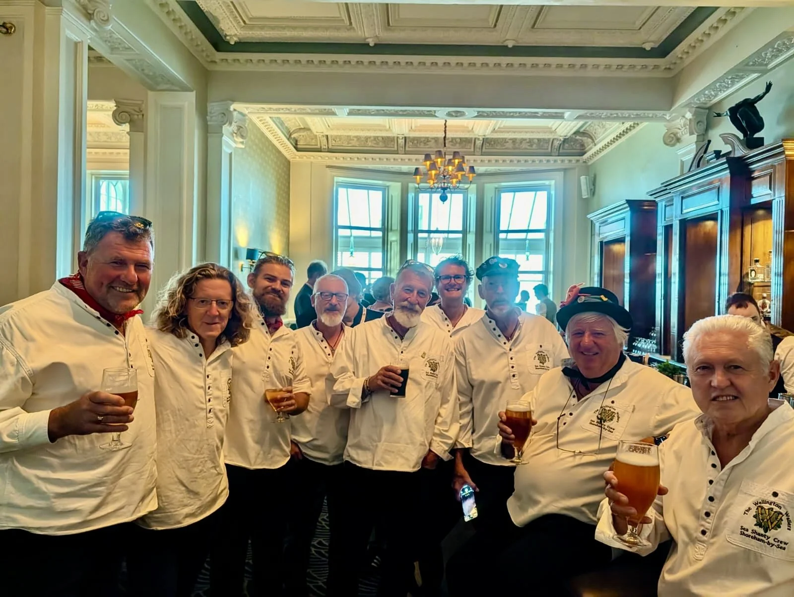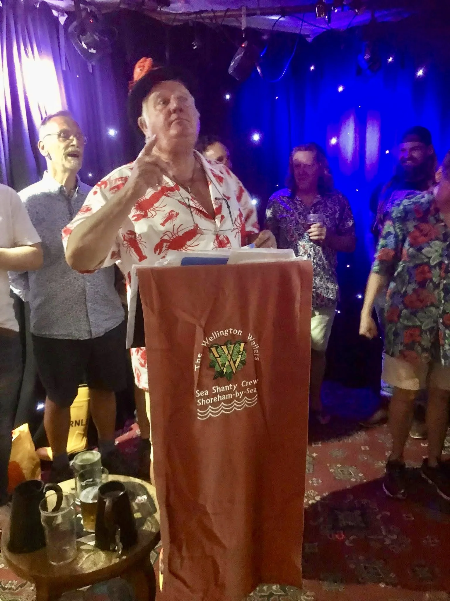 How did we become ‘The Wellington Wailers’? A brief history: We started as a group based at The Sussex Yacht Club, In Shoreham-by-Sea, about 12 years ago. Formed by two Sailing members, Ian Bush and Mike Green, they set up a common interest group of Sailing Singers, they practiced and performed at The Sussex Yacht Club, then known as ‘SYCO Shanty Men!’ This possibly described one or two of the members at that time! This was then a winter activity only. It was seen that we needed to grow membership as well as practicing and performing throughout the year. We then moved our activities to The Duke of Wellington Pub in Shoreham, who were already well established as a live music venue. The other attraction, surprisingly, was that they had great beers, ciders and other refreshment. This quickly became our new ‘Home’ We then changed our name in honour of the pub and became ‘The Wellington Wailers’. Our logo is taken from a stained glass window in the pub.