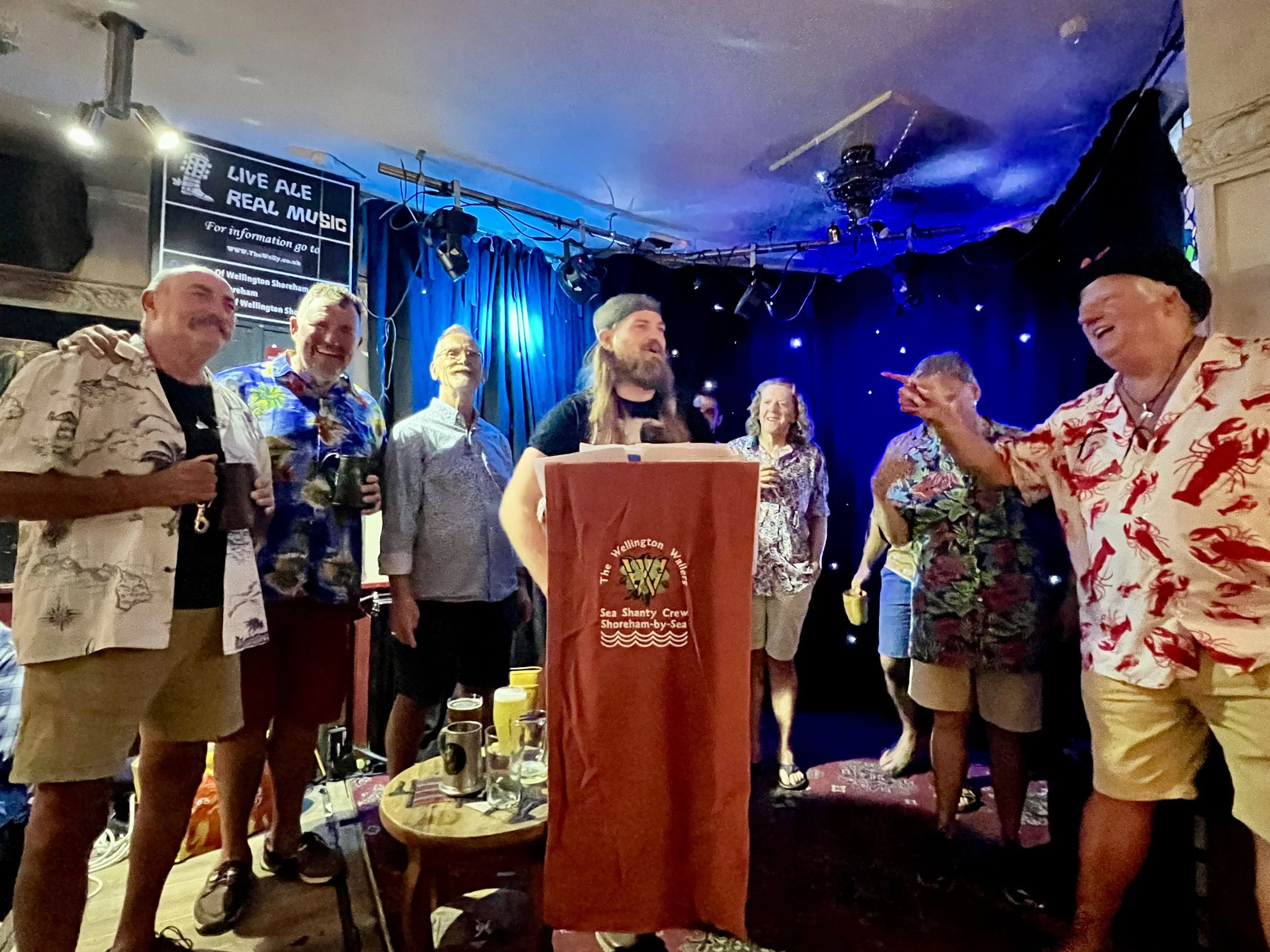 The Duke of Wellington in Brighton Road, Shoreham-by-Sea, BN43 6RE is our Home Port and Safe Harbour! We are proud to be associated with this pub and have been for several years now. This is because it is a ‘perfect fit’ of a traditional styled British Pub, that has a superb range and wide variety of Ales and Ciders from Sussex and Breweries far and wide. A variety that is frequently changing, so there is bound to be something for all tastes. This along with engaging and jovial bar staff, provide a wonderful atmosphere, where performers and locals alike can feel free to burst into song at almost any excuse.